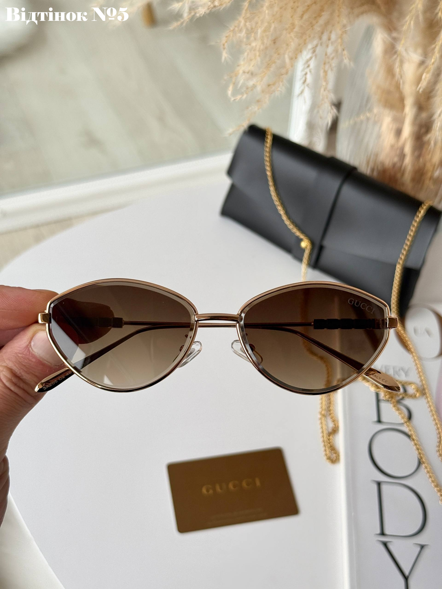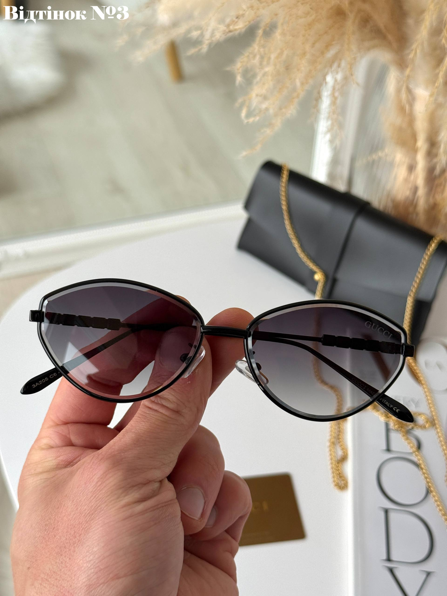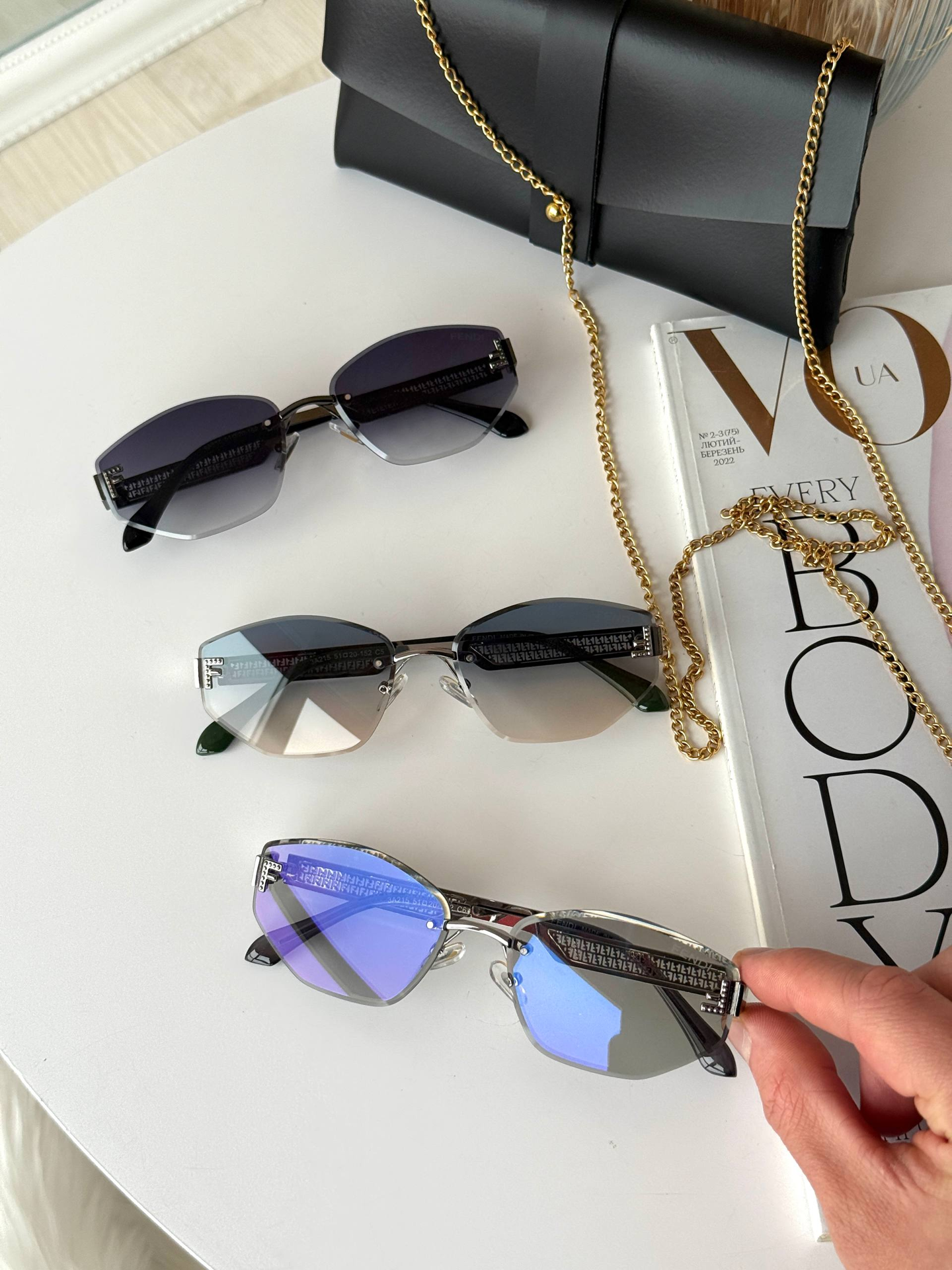 Вишуканість у кожній лінії. Безоправна модель, що стала легендою завдяки ідеальному балансу легкості та розкоші. Декор «Пантера» додає образу особливого шарму, а градієнтні лінзи — загадковості.
