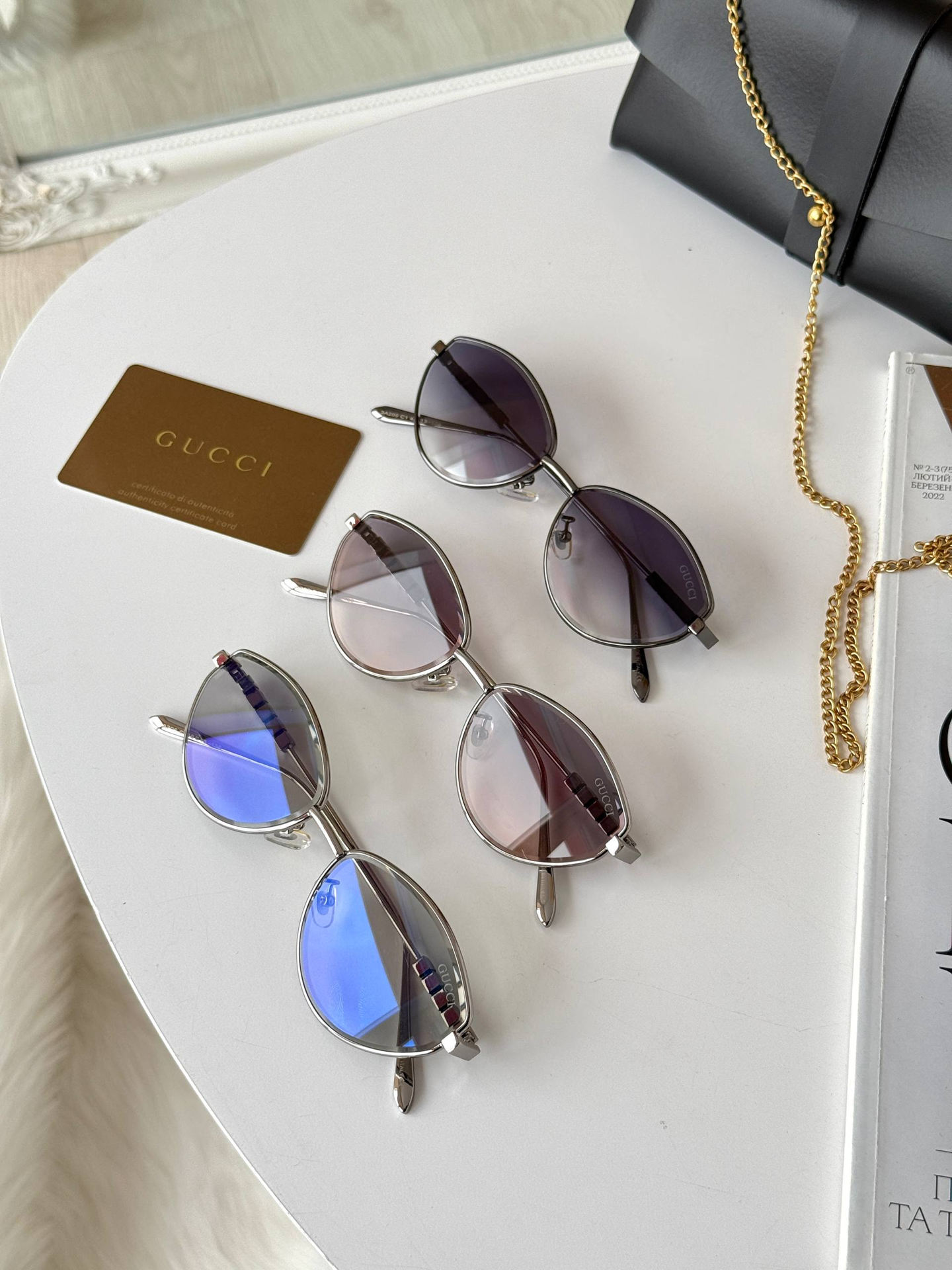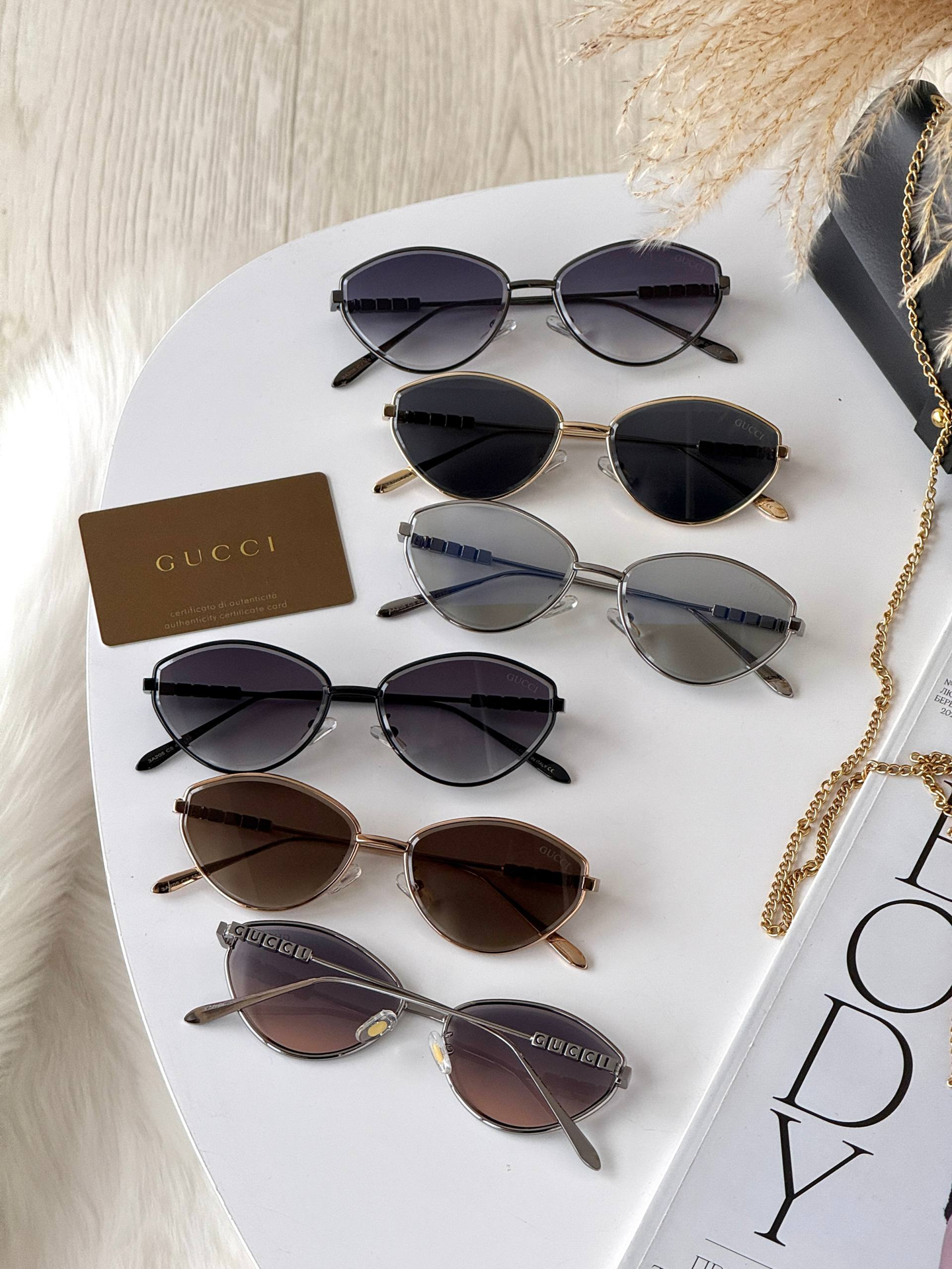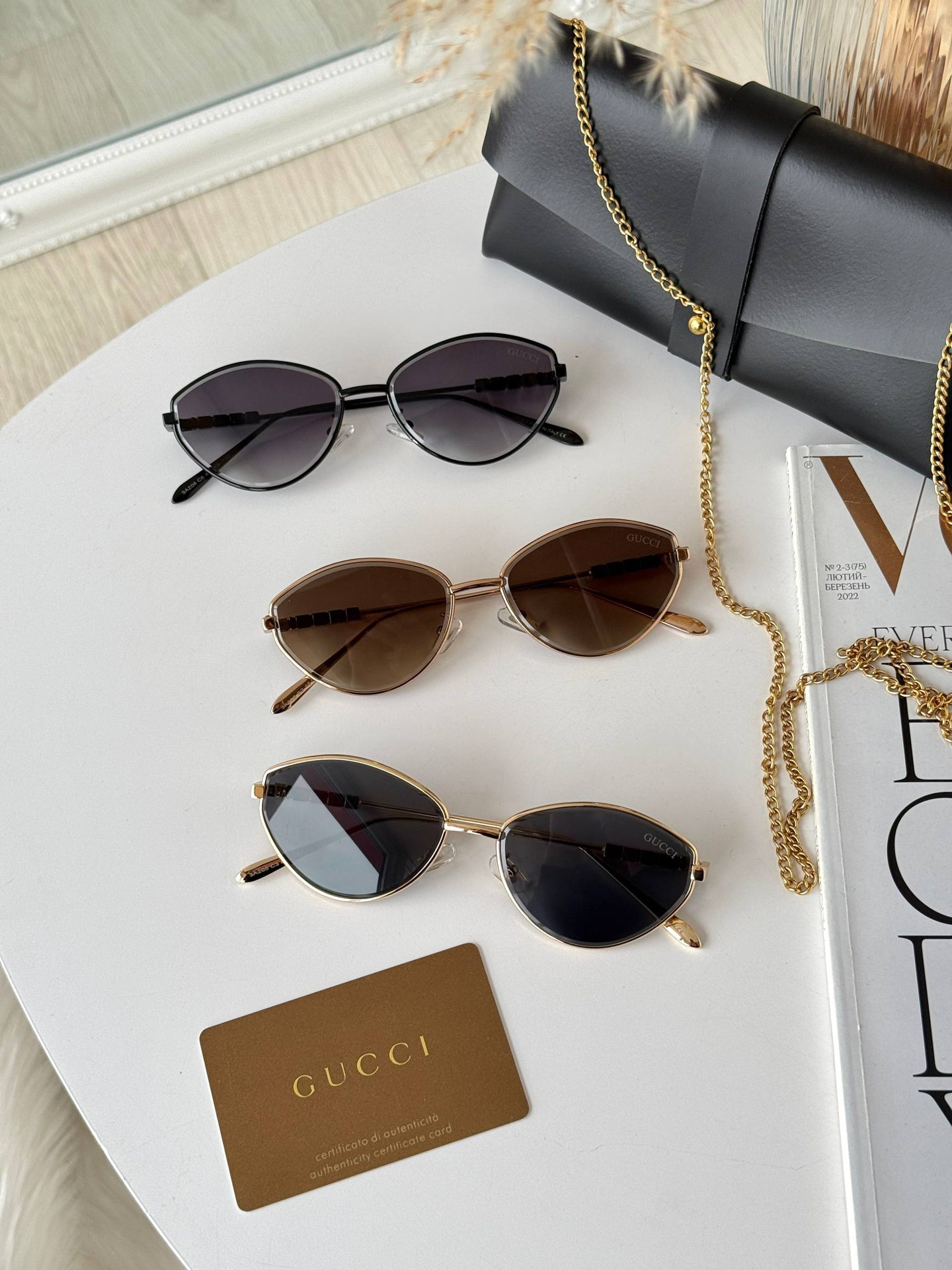 Вишуканість у кожній лінії. Безоправна модель, що стала легендою завдяки ідеальному балансу легкості та розкоші. Декор «Пантера» додає образу особливого шарму, а градієнтні лінзи — загадковості.