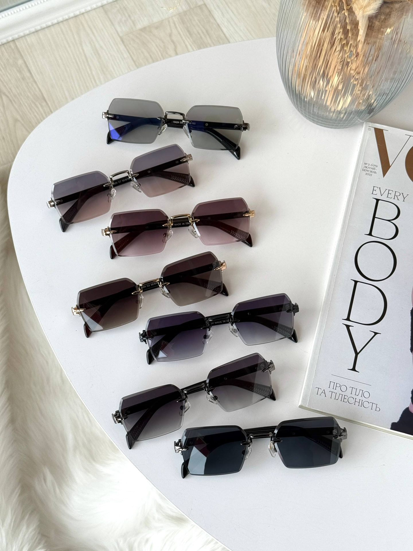 Ця безоправна модель — справжній маст-хев для тих, хто прагне виглядати дорого та вишукано. Завдяки відсутності масивної рами та стильній багатокутній формі лінз, окуляри створюють ефект невагомості, ідеально підкреслюючи витонченість жіночого обличчя. Високоякісний полікарбонат із градієнтним напиленням додає образу загадковості, а максимальний захист UV400 гарантує вашим очам повну безпеку під яскравим сонцем. Модель бездоганно сідає на середній тип обличчя, стаючи тим самим фінальним штрихом, який робить ваш вихід незабутнім.