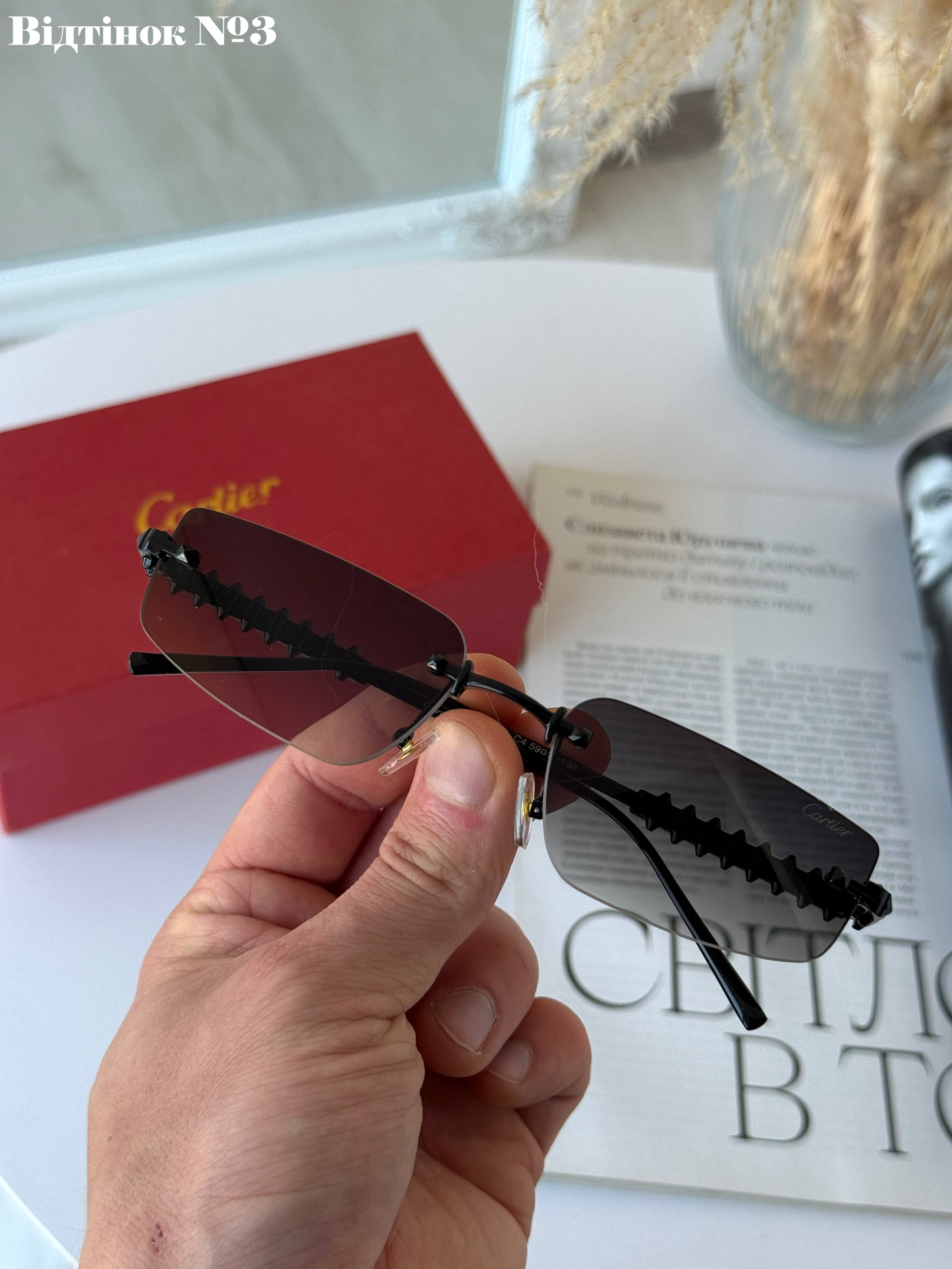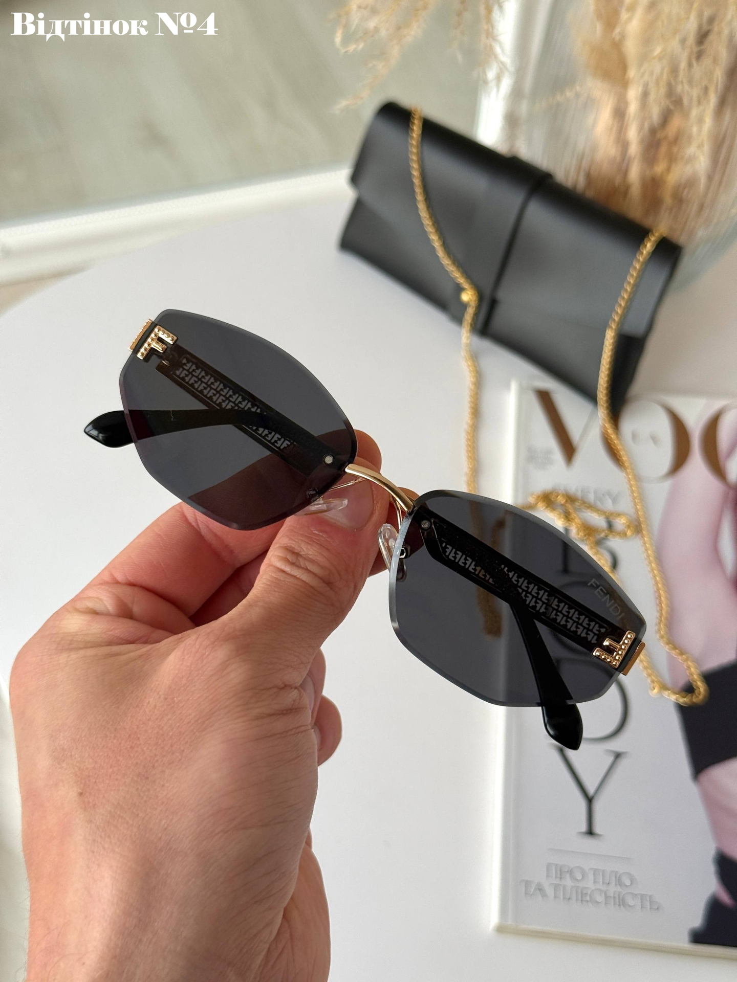 Додайте своєму образу витонченості з нашою новою колекцією безоправних окулярів. Ця модель створена для тих, хто цінує мінімалізм у поєднанні з преміальними деталями. Масивні дужки з фірмовими елементами створюють ідеальний контраст із невагомими лінзами, роблячи цей аксесуар головним акцентом вашого гардероба.