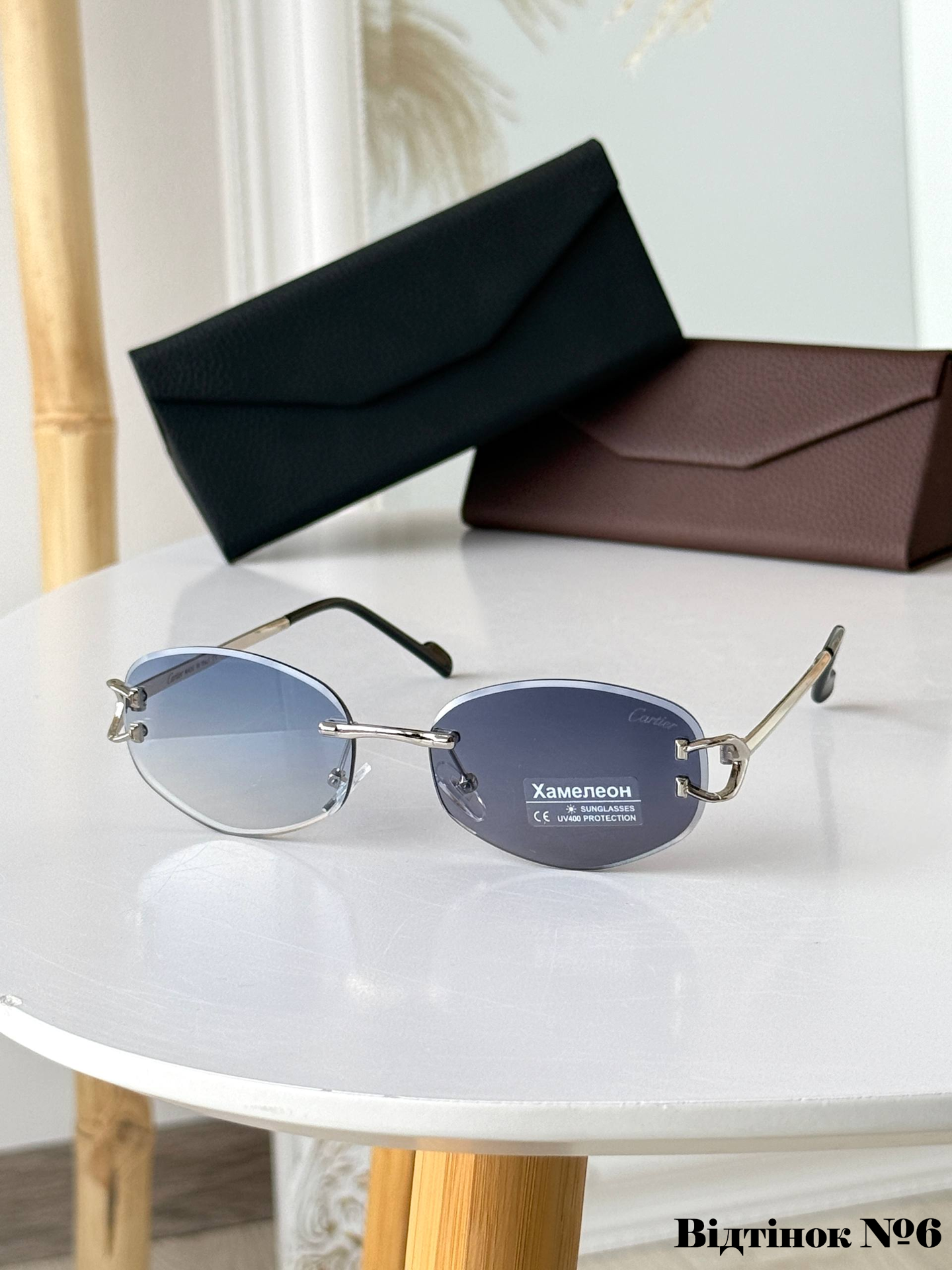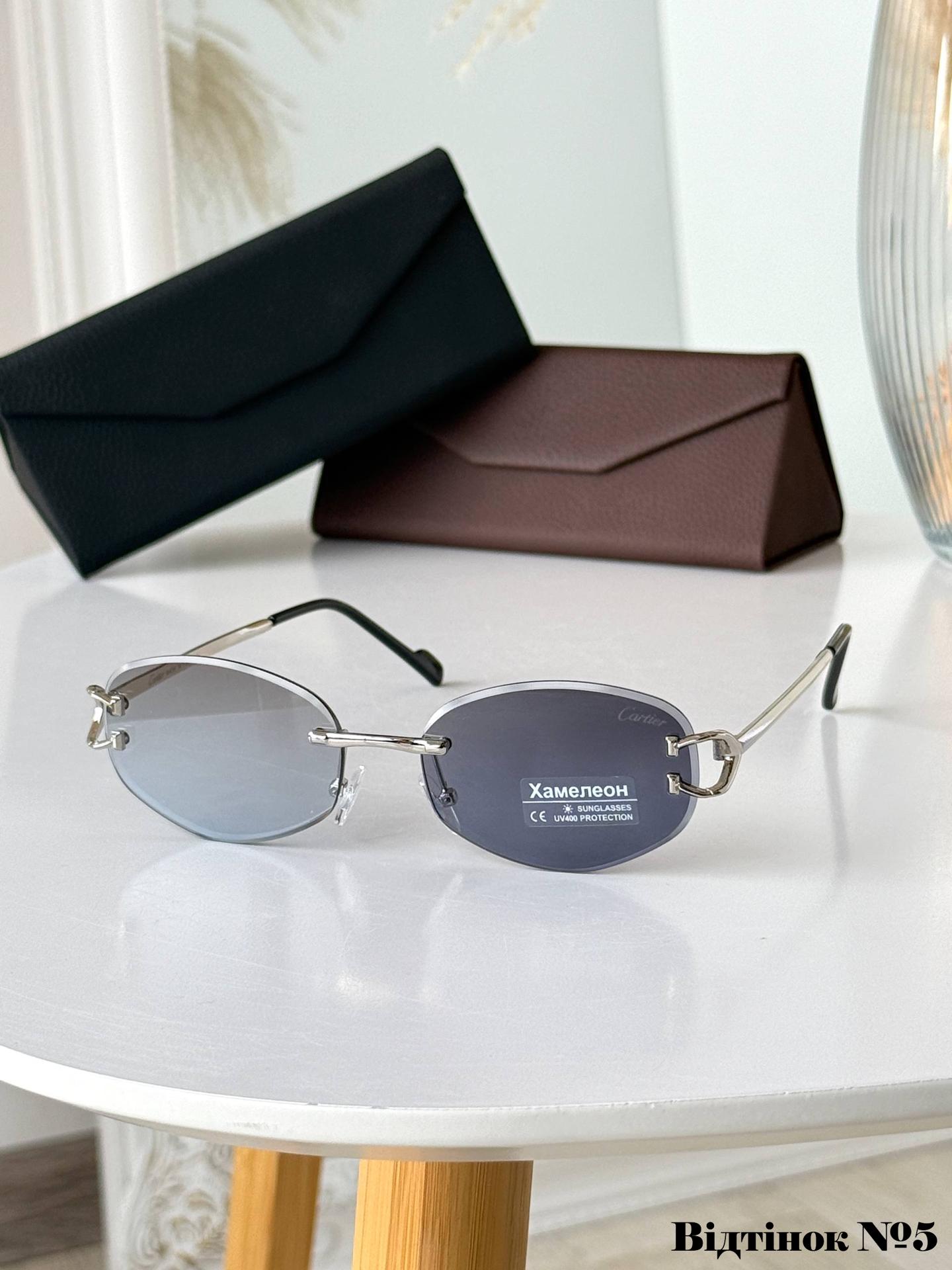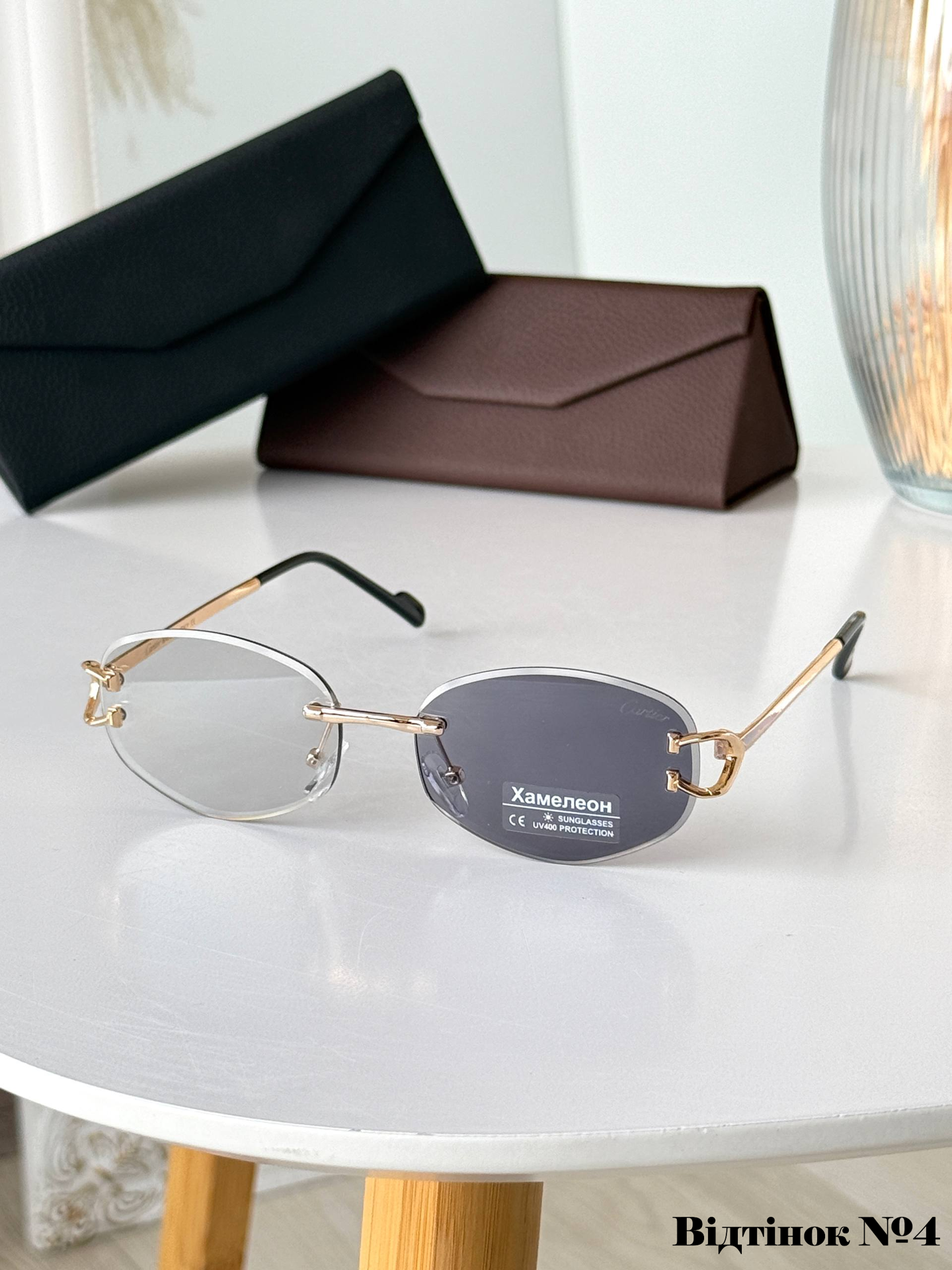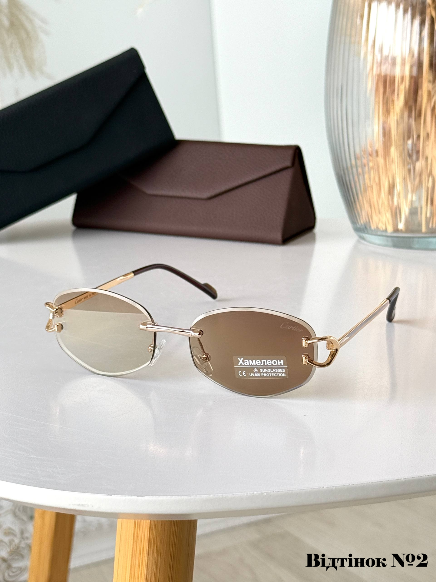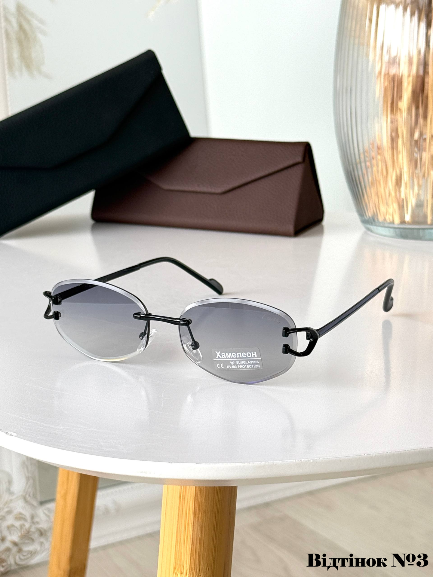 Ця безоправна модель унісекс — справжній символ статусу та вишуканого смаку. Головною особливістю є дерев’яні завушники, які не лише виглядають ексклюзивно, а й надзвичайно приємні на дотик. Інтелектуальні лінзи з ефектом «хамелеон» автоматично адаптуються до рівня освітлення, забезпечуючи ідеальну видимість як у приміщенні, так і під яскравим сонцем. Максимальний захист UV400 та легка посадка на середнє обличчя роблять їх ідеальним вибором для тих, хто цінує комфорт без компромісів.
