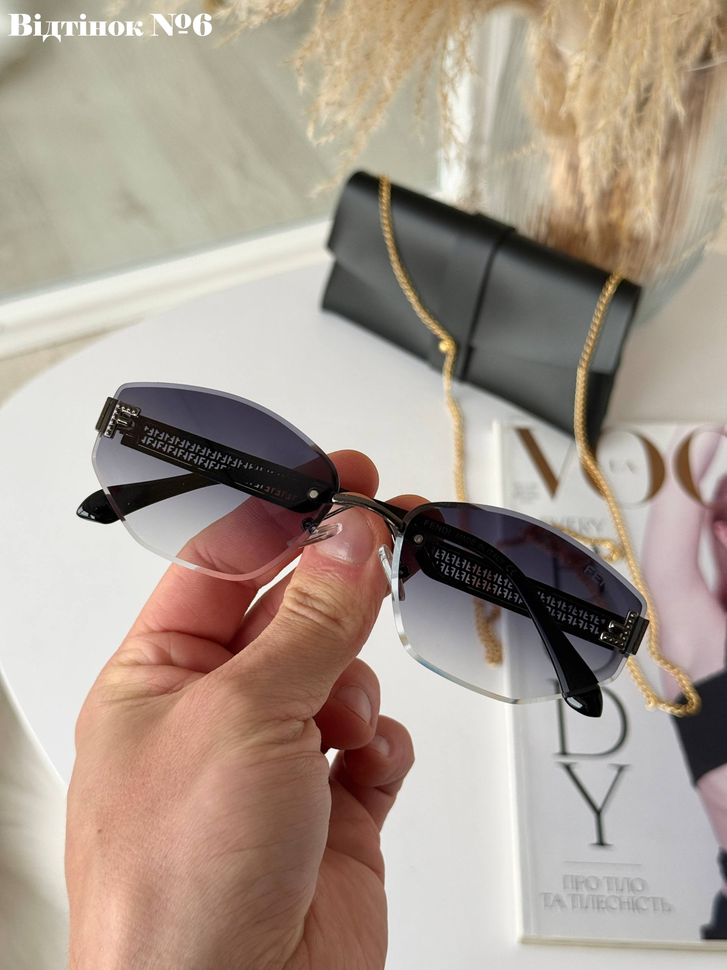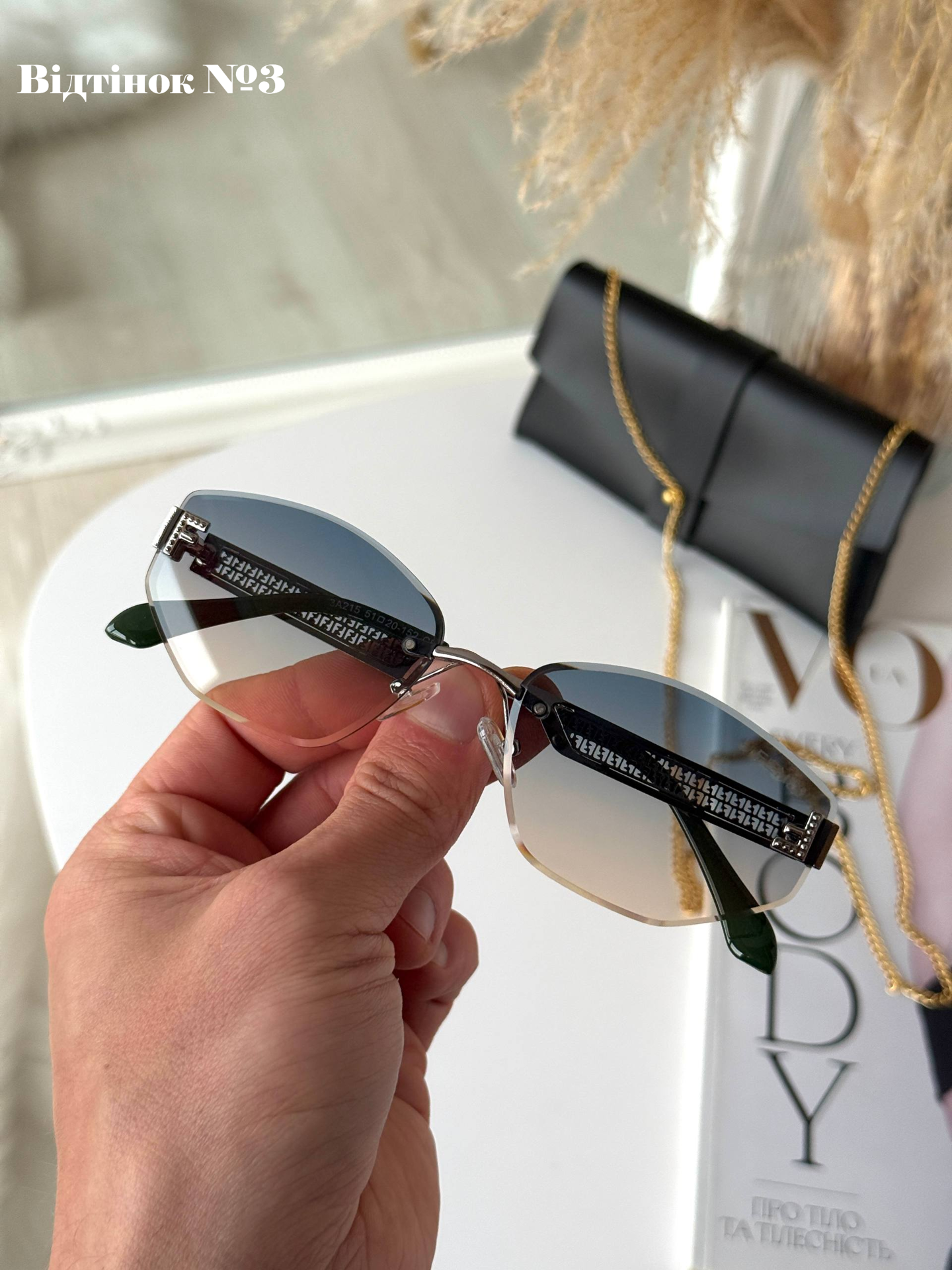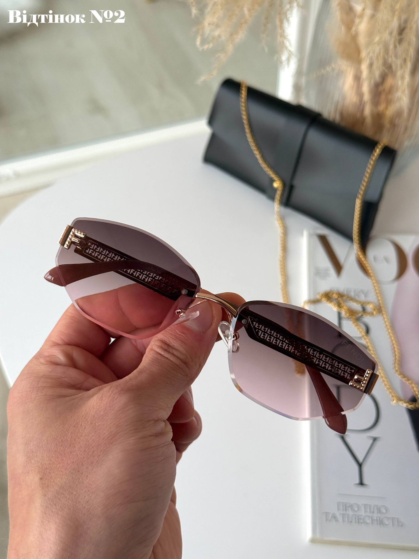 Ця безоправна модель — втілення справжньої жіночності та елегантності. Завдяки відсутності масивної рамки, окуляри виглядають неймовірно легкими та невагомими на обличчі, акцентуючи увагу на вашому погляді. Високоякісні градієнтні лінзи з полікарбонату забезпечують м'який перехід кольору та надійний захист UV400, що робить їх ідеальним аксесуаром як для міста, так і для відпочинку. Модель розроблена для бездоганної посадки на невелике та середнє обличчя, додаючи вашому образу особливого статусу та вишуканості.