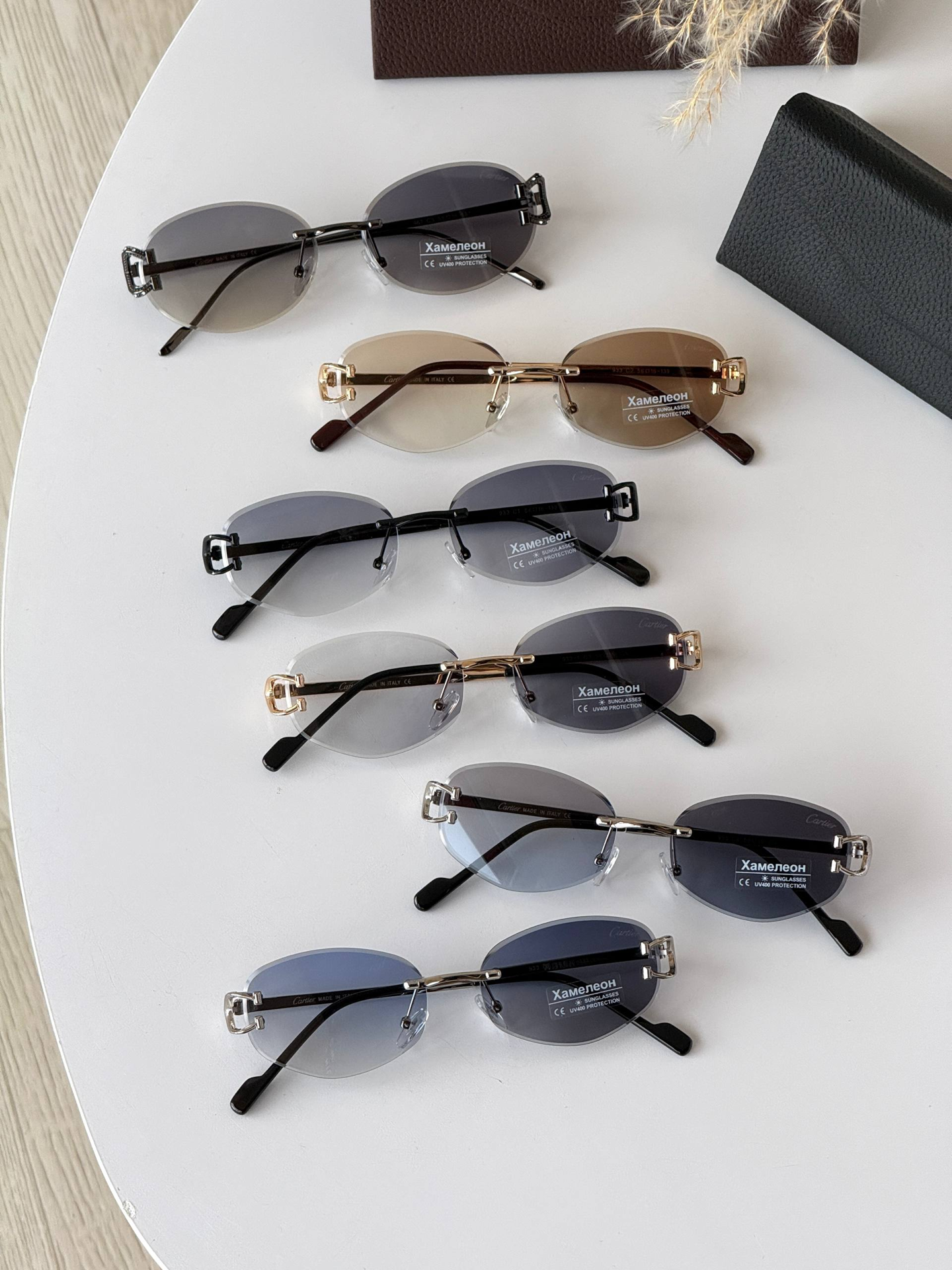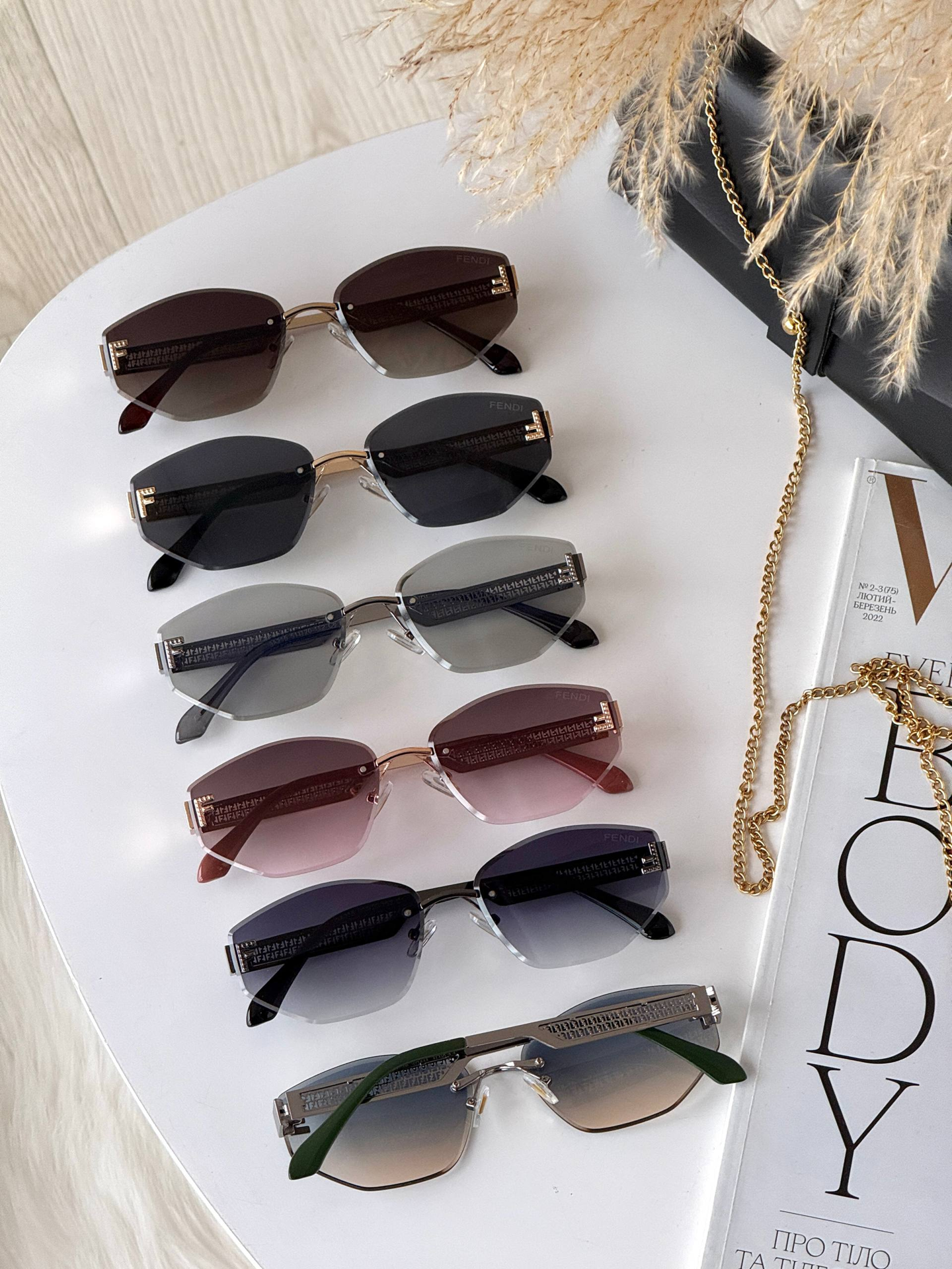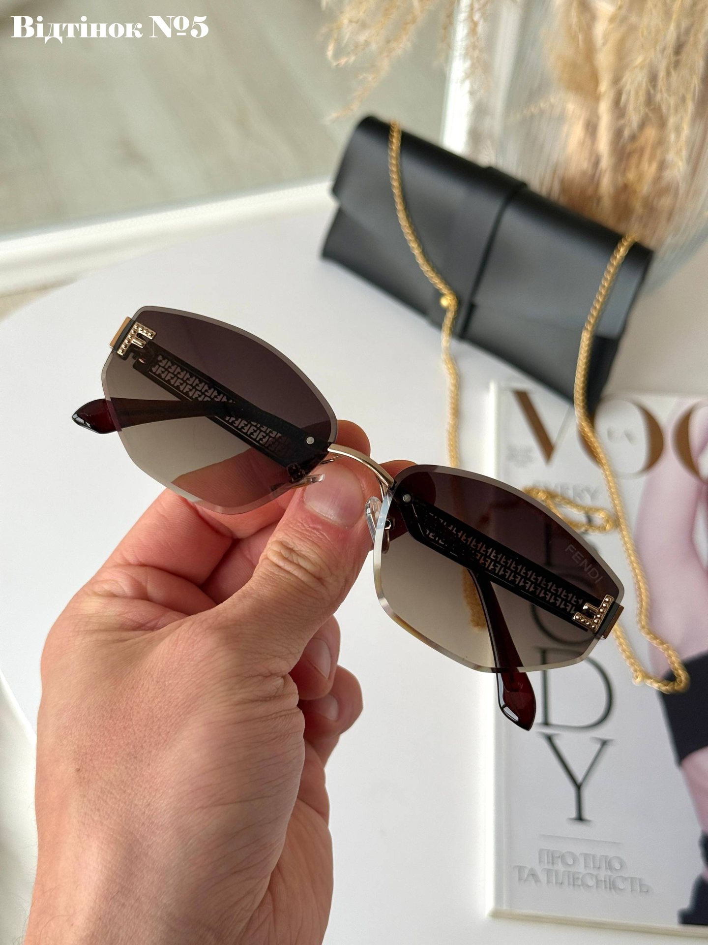 Ця безоправна модель — втілення справжньої жіночності та елегантності. Завдяки відсутності масивної рамки, окуляри виглядають неймовірно легкими та невагомими на обличчі, акцентуючи увагу на вашому погляді. Високоякісні градієнтні лінзи з полікарбонату забезпечують м'який перехід кольору та надійний захист UV400, що робить їх ідеальним аксесуаром як для міста, так і для відпочинку. Модель розроблена для бездоганної посадки на невелике та середнє обличчя, додаючи вашому образу особливого статусу та вишуканості.