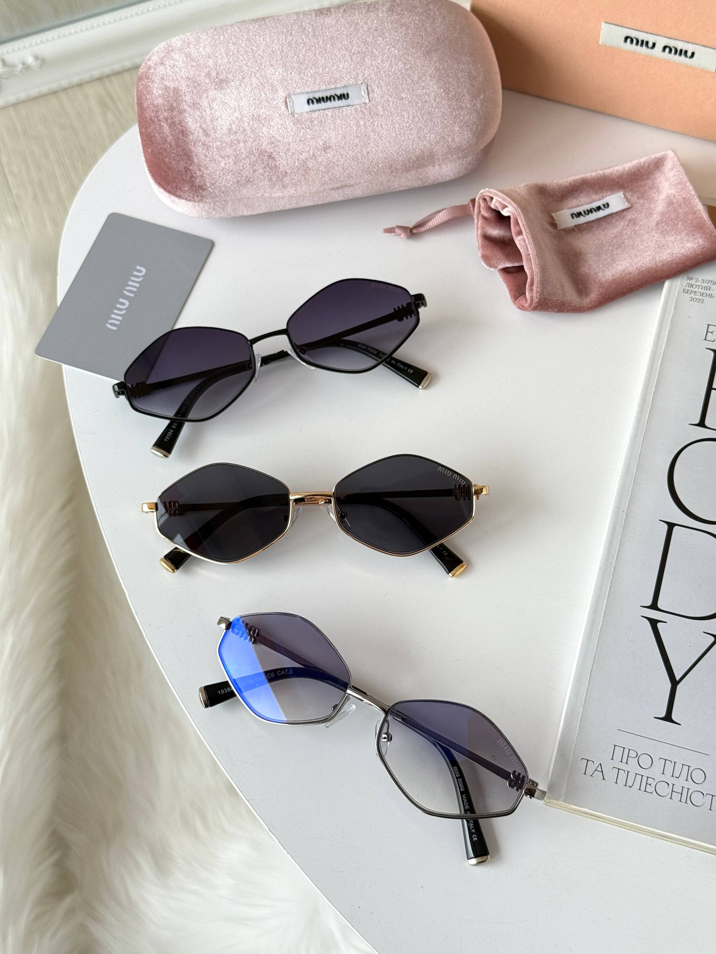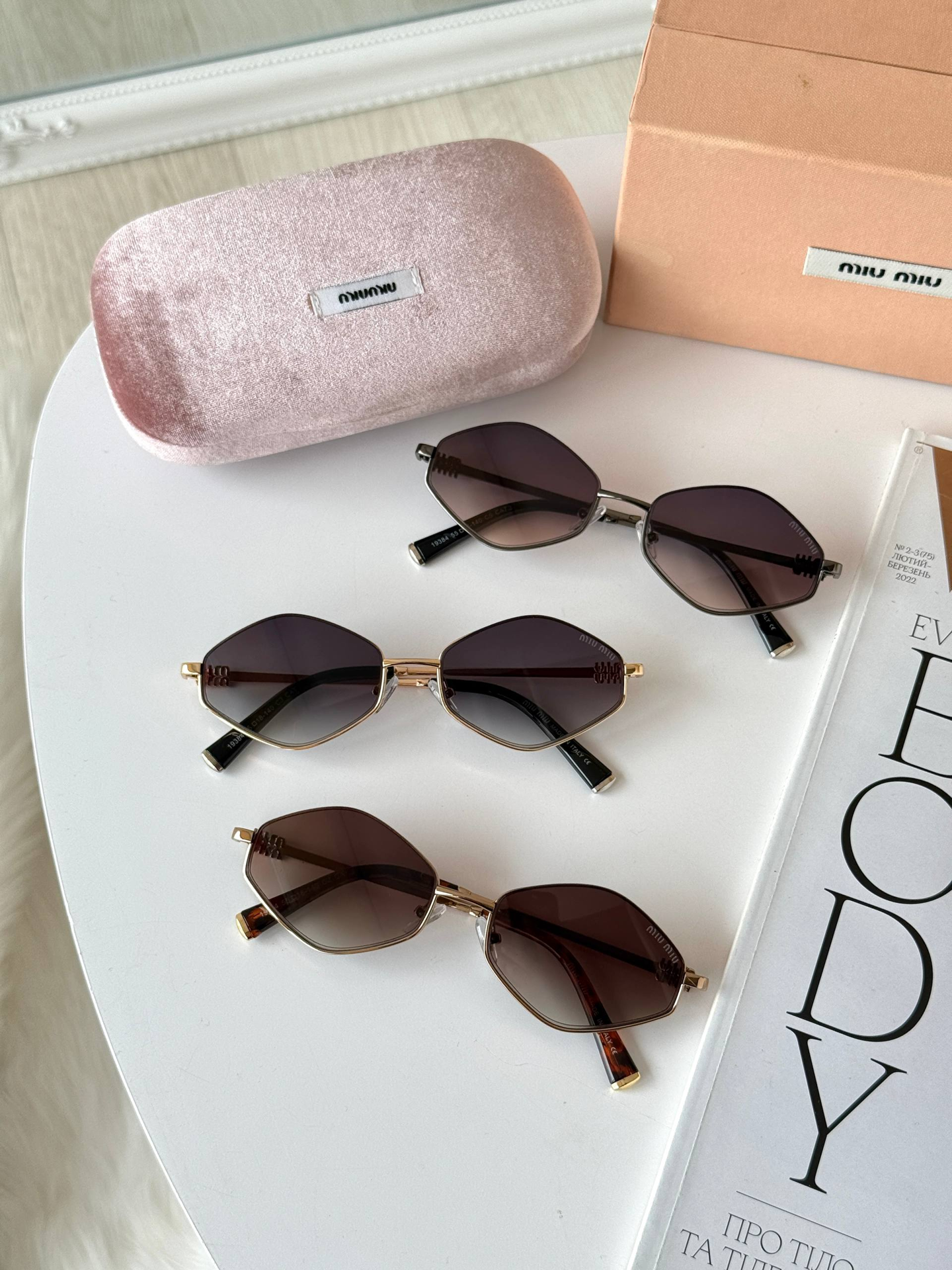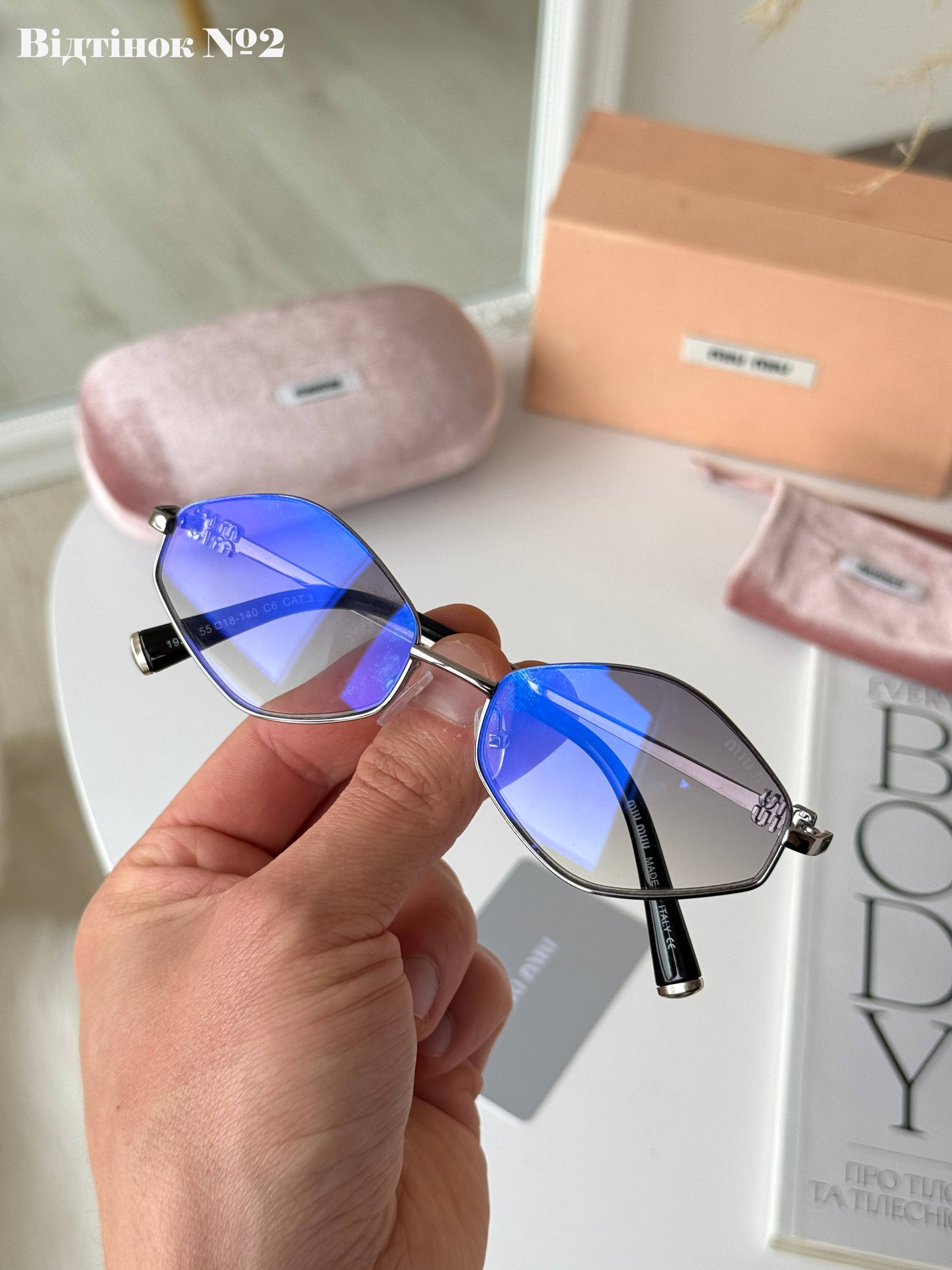 Витончена новинка Miu Miu 2026 у формі стильних ромбів — ідеальний вибір для вузького та середнього обличчя. Легка сталева оправа поєднується з високоякісними лінзами UV400, що гарантують надійний захист та преміальний вигляд вашого образу.