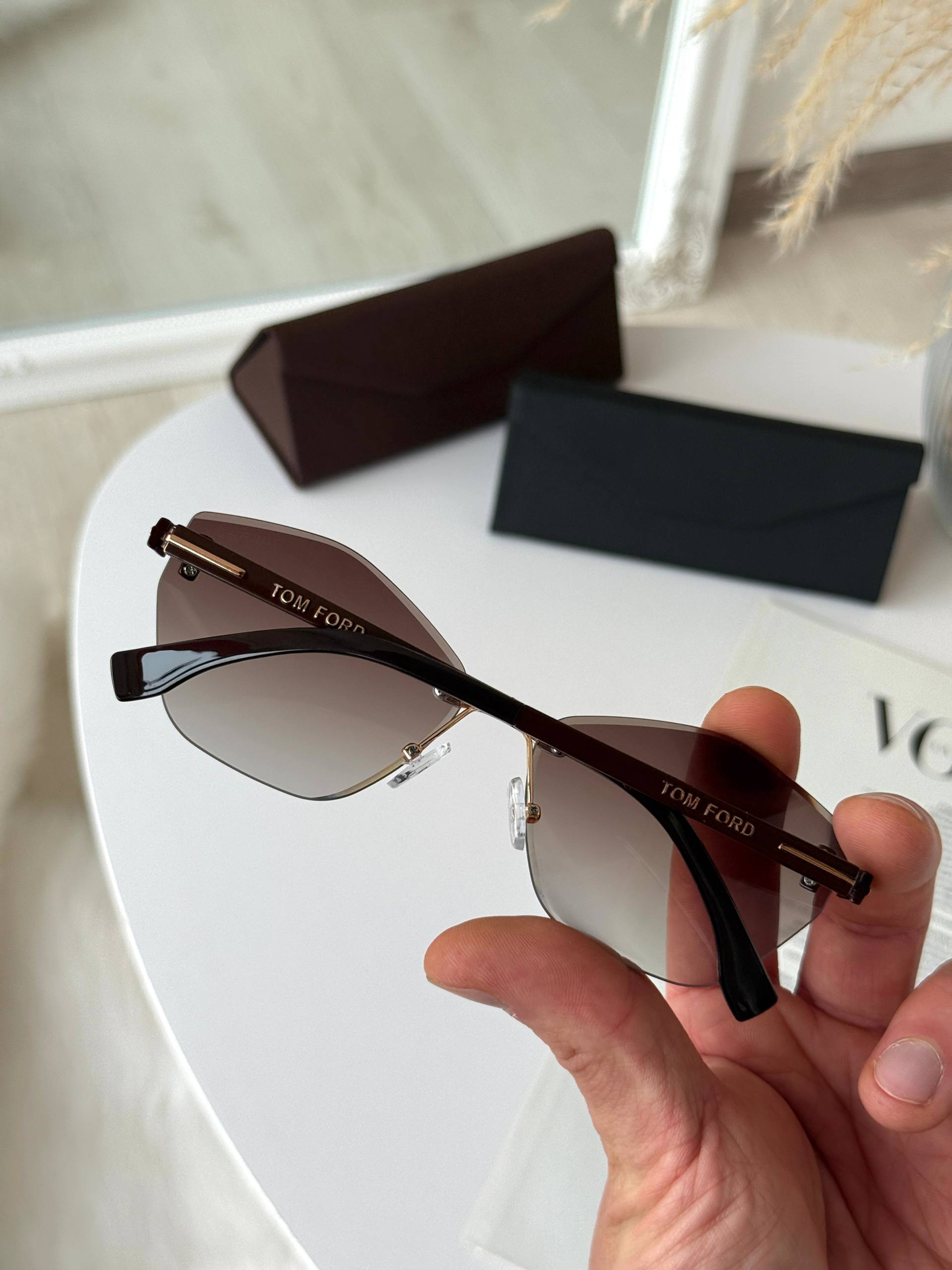 Ця безоправна модель — втілення справжньої жіночності та елегантності. Завдяки відсутності масивної рамки, окуляри виглядають неймовірно легкими та невагомими на обличчі, акцентуючи увагу на вашому погляді. Високоякісні градієнтні лінзи з полікарбонату забезпечують м'який перехід кольору та надійний захист UV400, що робить їх ідеальним аксесуаром як для міста, так і для відпочинку. Модель розроблена для бездоганної посадки на невелике та середнє обличчя, додаючи вашому образу особливого статусу та вишуканості.