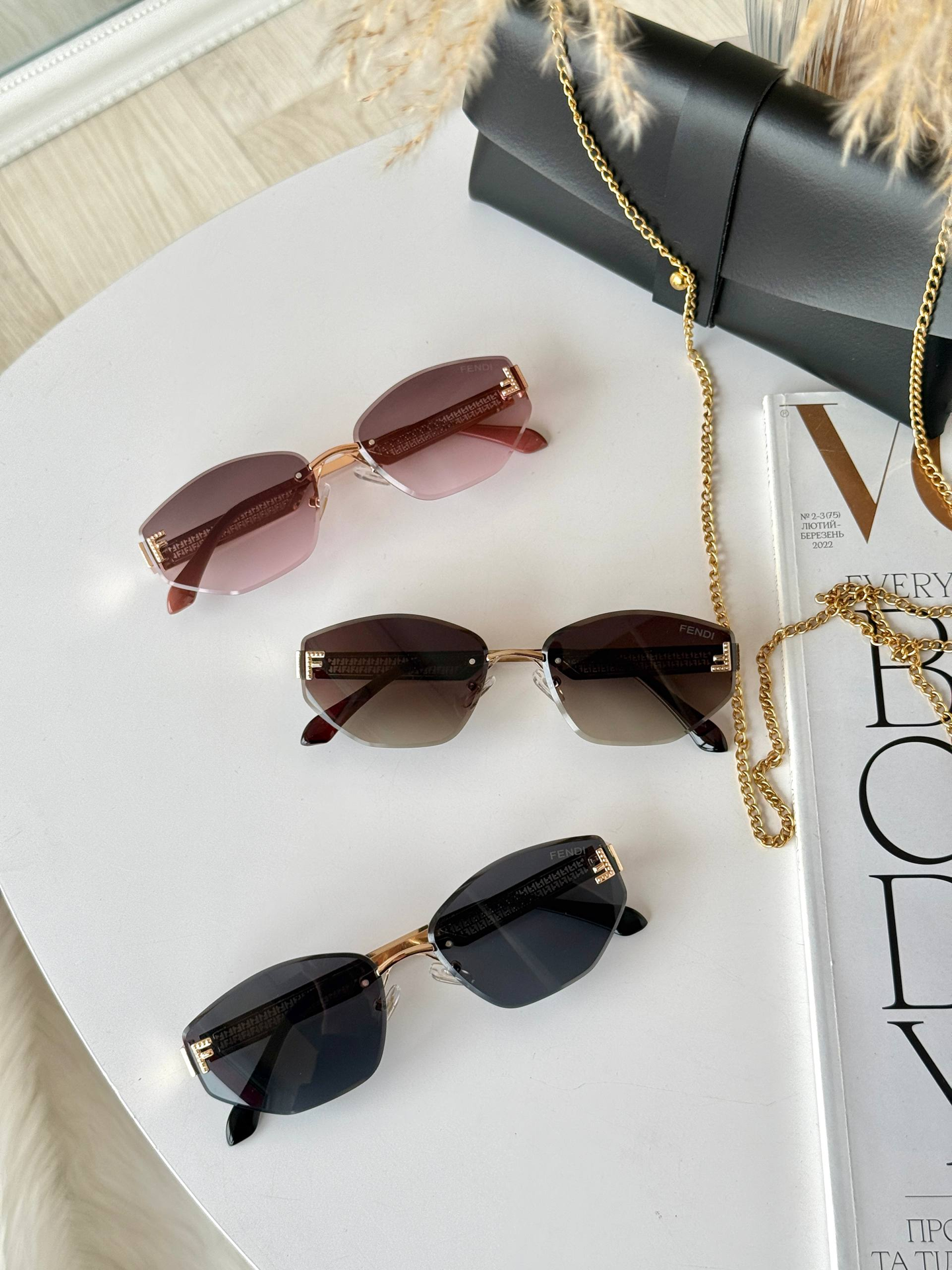 Вишуканість у кожній лінії. Безоправна модель, що стала легендою завдяки ідеальному балансу легкості та розкоші. Декор «Пантера» додає образу особливого шарму, а градієнтні лінзи — загадковості.